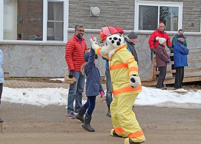 High fives for Sparky the fire dog at the Lion’s Head Santa Claus Parade.