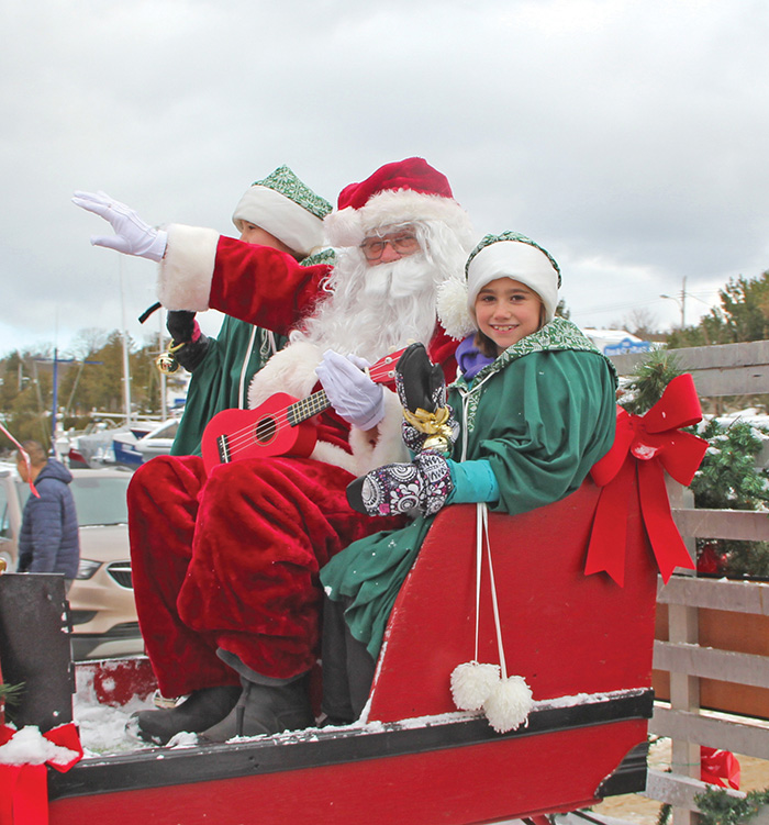 As all of Santa’s elves are busy at the North Pole, Acadia Parent (right) and Kearnyn Forbes stepped in to lend Santa a hand at the December 8th Tobermory Santa Claus parade.