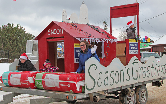 Miller Lake RONA’s Snoopy float in the December 8th Tobermory Santa Claus Parade.