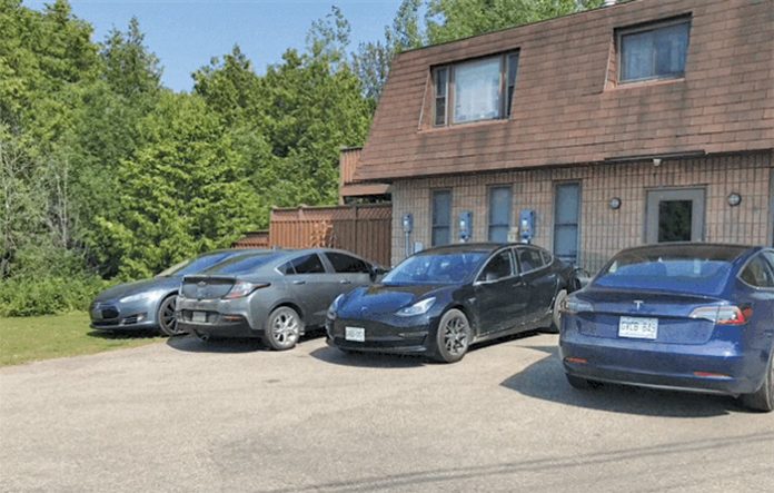 Photo: The Blue Heron Company electric vehicle chargers at their 20 Head Street location in Tobermory have been getting lots of use this summer.
