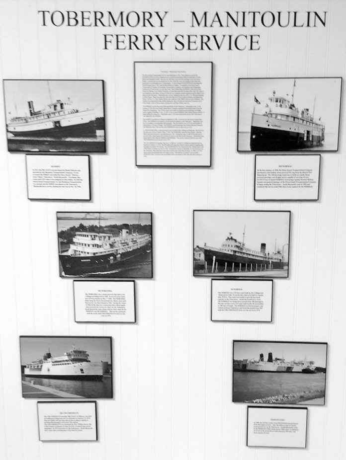 The St Edmunds Bruce Peninsula Museum has a new exhibit detailing a history of the Tobermory to Manitoulin Ferry Service from the early 1930s to the present. The exhibit includes photos and a brief history of the six ships that have served this link during this period. The display was researched and prepared by Shirley Johnstone and is an important part of our history.
