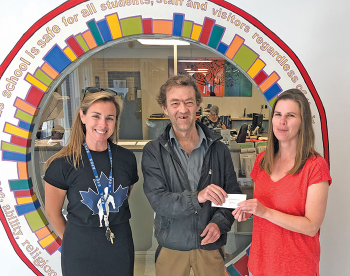 Want to sponsor a month? These three challenge you to step up by contacting BPDS at 519-793-3211.Ms Sweatman and Ms Preston accept a donation for Cross Country running from Mr Tim Hayes of the Lion’s Head Bottle Drive.