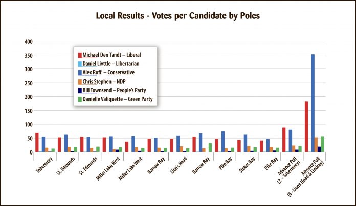 Advanced poll totals for Lion’s Head & Lindsay showed strong Conservative support; 352 votes to 181 for Liberal.