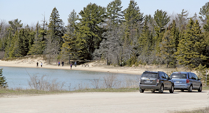 Photo: Black Creek Provincial Park (Sandy Beach) is clearly posted as closed but two carloads of visitors went for a walk anyway on April 25. This kind of activity is generating a firestorm on social media. Many complain that the beach walkers are breaking the law; others ask what’s the harm in a few people walking on the beach?
