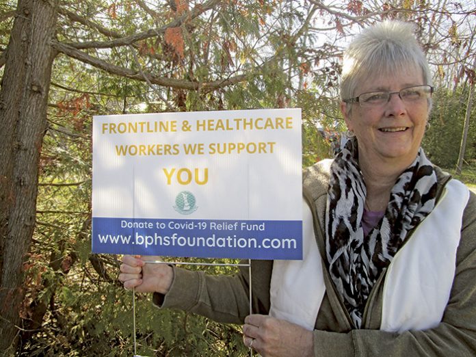 According to April Patry of the BPHS Foundation, the people of the Bruce Peninsula and other nearby communities have quickly and generously responded to the call for support of our local, front-line healthcare workers, and to support our healthcare system through this pandemic. “Many individuals and businesses have donated to the BPHSF Covid-19 Relief Fund” says Ms Patry. “Over 100 of our Covid-19 Relief signs of support (and counting) of this fund have been staked from Georgian Bluffs to Tobermory, and over $40,000 has been raised to date” she said.