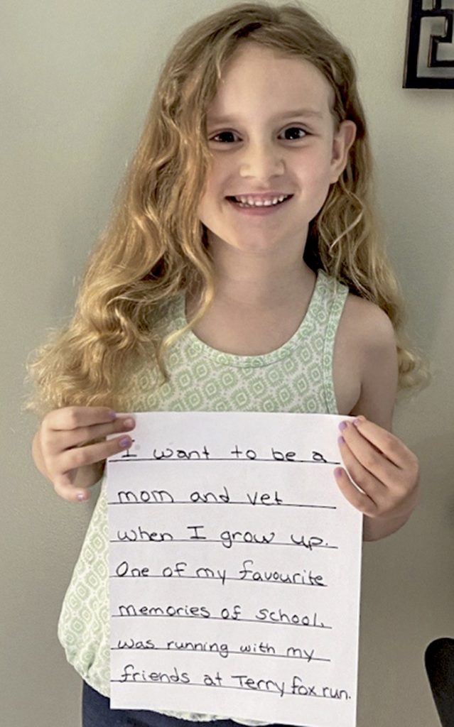 The second award is a leadership award. Each year, St. Edmund’s Public School presents a Principal’s Award for Student Leadership to a deserving student. This year we are excited to announce and would like to congratulate Aria Pitul in receiving this award. Aria is a grade two student who consistently demonstrates leadership skills both within her own classroom and within the school. Aria was always ready, able and eager to help out the JK/SK students with jackets, snowpants, etc before going outdoors to play or during dismissal time. In addition Aria was always willing to read to others, complete morning announcements, tidy up the technology in the classroom, help ensure gym equipment was neatly stored and would often be observed helping out others in her own classroom, especially in math. Congratulations Aria, and best of luck next year!”