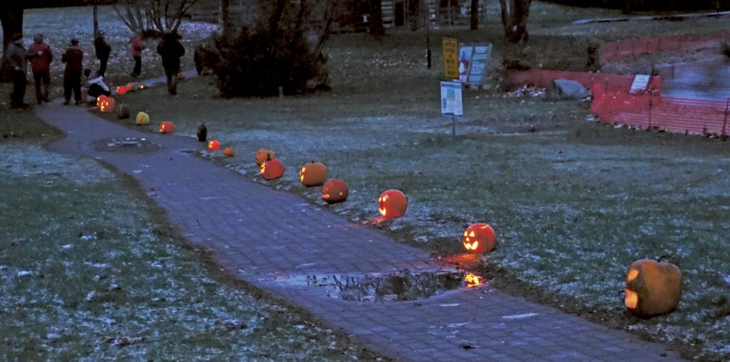 About 45 jack o’ lanterns lined the pathway from the Lion’s Head Beach pavilion to the marina at the first annual Pumpkin Parade November 1st. Locals braved the stormy November night to admire the jack o’lanterns and show support for the event.