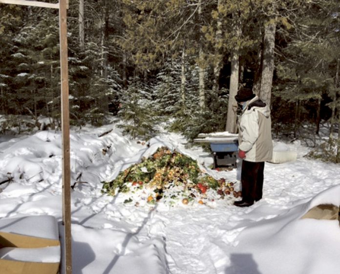 The Compost Queen has monthly compost heaps in the yard, a veritable buffet for wildlife – “Let them have at it!” she says with enthusiasm. Bears, snowshoe rabbits, raccoons, skunks and squirrels trample the snow as evidence of sharing the wealth… and wealth it is. An impoverished family upbringing taught Bunkey to waste nothing.