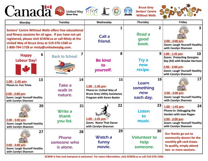 Are you a senior isolated and feeling disconnected from the outside world during the Covid-19 pandemic? The United Way of Bruce Grey, Northern Bruce Peninsula Community Support Committee and partners are proud to offer the Seniors’ Centre Without Walls (SCWW). This telephone conferencing program offers an inclusive, safe, inviting space to listen, learn and be heard. It can also increase social connectedness and well-being of participants. The SCWW will provide a way for a diverse community of people to connect by telephone for free group activities, informative, interactive presentations and is geared towards seniors 55+ and adults 18+ that identify as living with a disability.