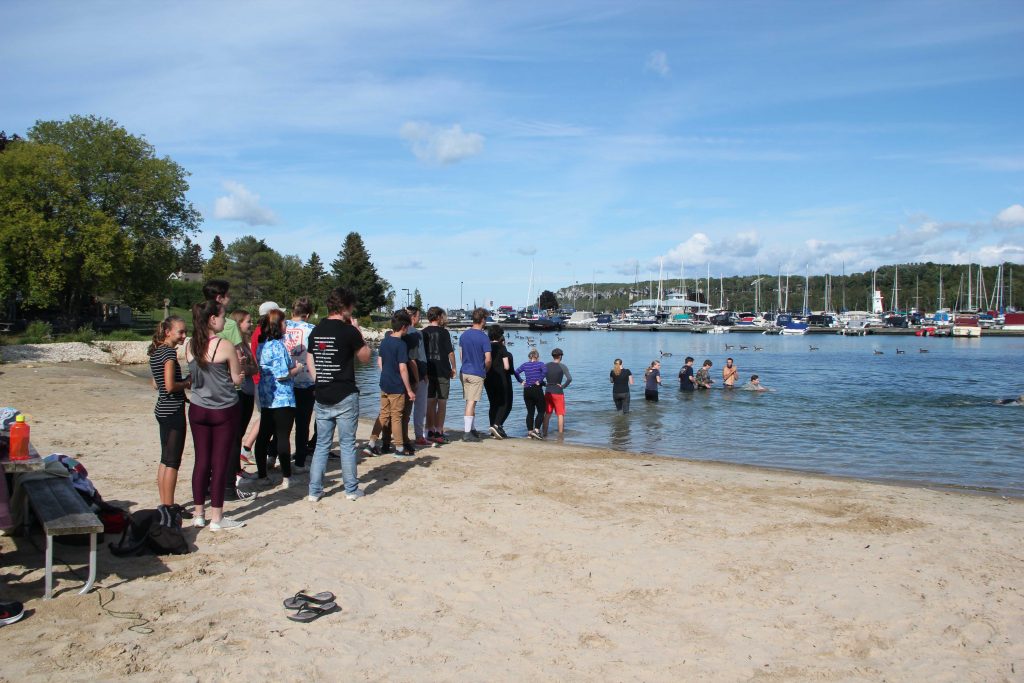 The first field trip is the three-day “Fall Hike” along the north shore of the peninsula with overnight camps at High Dump and Storm Haven. The second is the “Winter Camp”: several days living in a quinzee. This year’s winter camp will take place at the Outdoor Education Centre near Wiarton but organizers hope to return to the traditional site at Outers Island (a small island in an inland lake near Dyers Bay) in future years. The crowning achievement is the 8-day Algonquin trip, which Ashley Myles describes: “We paddle over 100km and complete many gruelling portages. This trip is amazing for the students. There are as many mental challenges as physical challenges for the students to overcome.“