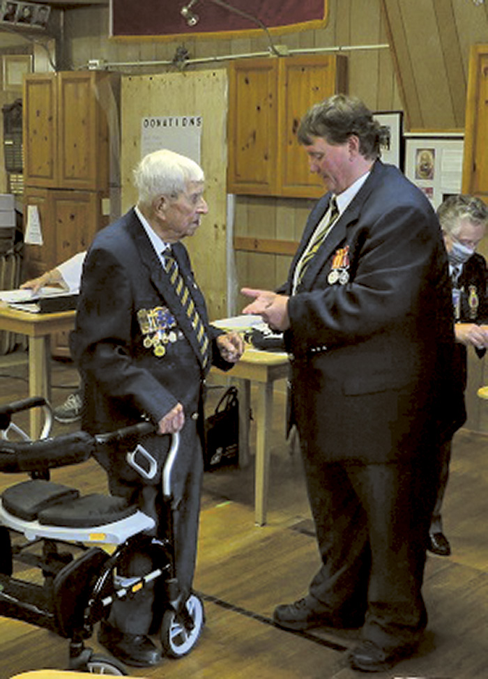 Branch 202’s last World War II veteran, Ken Diebel received his seventy-five year service pin and bar at the October meeting of the branch executive. He got a standing ovation from the audience.
