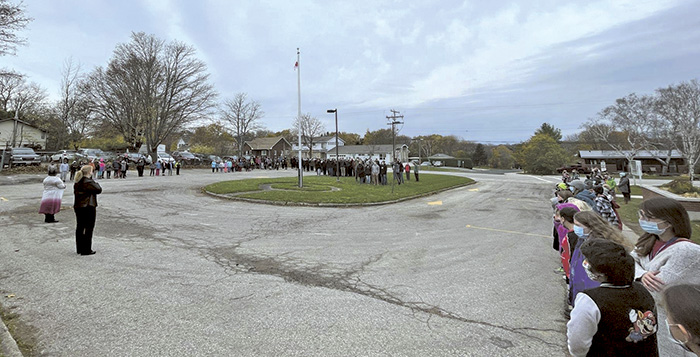 Due to Public Health Protocols, we could not attend the Remembrance Day service at the cenotaph, so we held our own school-wide ceremony outside. It was the first time this year that we had brought all K-12 students together – it was important to come together to raise the flag and stand for a moment of silence, together as a school, while remaining in our cohorts.