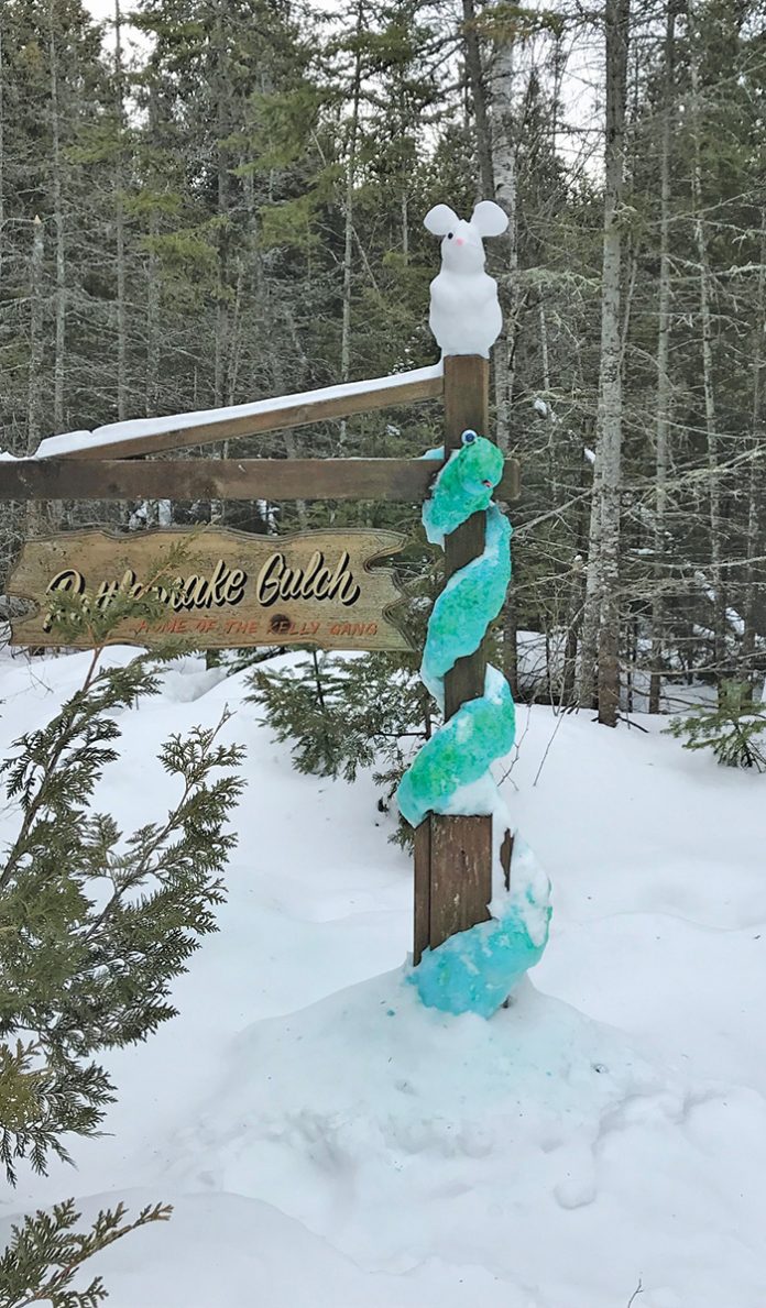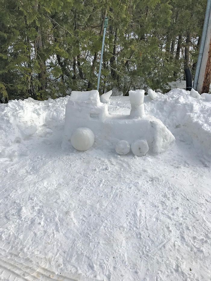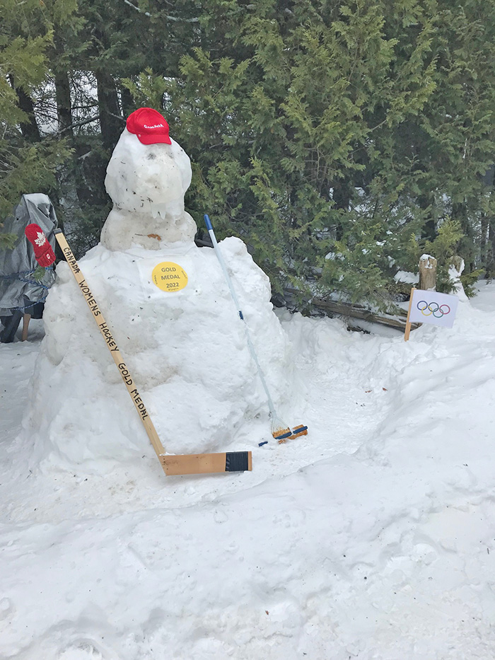 The 2nd Annual Eagle Road Snow Sculpture Event went ahead in spite of high winds, cold temperatures and … once again … lousy packing snow! People just got creative and came up with some unique ideas to celebrate Family Day Weekend on Eagle Harbour.