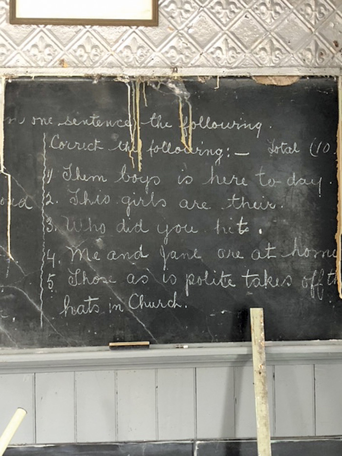 It was when they began the renovation to move the electrical panel from the outside shed to the inside cupboard that they discovered the slate boards with pristine cursive written lessons by the teacher still intact. “They were probably imported by paddlewheel up the Great Lakes from Vermont and are similar to those in a school in Southampton, according the members of the Bruce County Historical Society,” Dover explained.