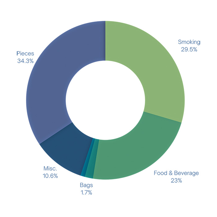 More than 73% of litter collected was made from plastic or plastic components.