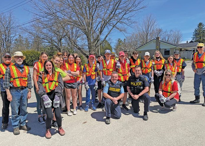 The 23 students were divided into teams of four and were assigned various segments of the road for clean-up. Spending about an hour and a half, the students collected approximately ten bags of garbage and eight bags of recyclable items. Photo Credit: Joanne Rodgers, Bruce Peninsula Press