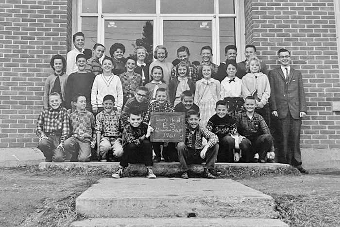 History Bruce Peninsula Past: Lion’s Head Public School 1961 June 2, 2022 1050 Share FacebookTwitterWhatsAppLinkedinEmailPrint A 1961 photo of Lion’s Head Public School. The two room school house taught grades 5-8. Mr Bill Stewart (far right) was the principal. The building is now the Bruce Peninsula Family Centre. Photo Credit: Bill Stewart