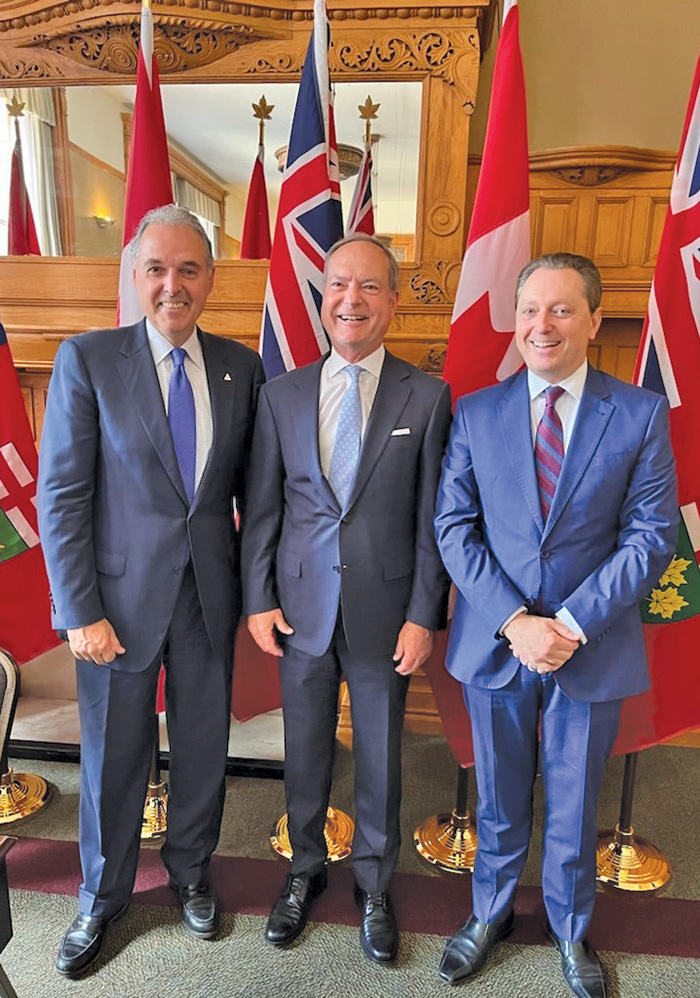 L-R: Bruce-Grey-Owen Sound MPP Rick Byers, Finance Minister Peter Bethlenfalvy and Parliamentary Assistant Stephen Crawford.