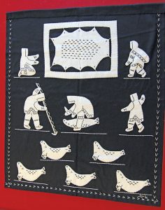 Ms. Pingushat has stitched her name into each piece in her native Inuktut. Each wall hanging is exquisite and demonstrates the incredible stitching skills of the Inuit women; as well as depicting images of tradition, culture and natural environment of the Inuit.
