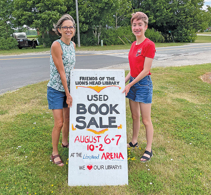 Friends of the Lion’s Head Library volunteers, Donna Hambleton and Clover Young, (photo left) have been placing signs around Lion’s Head in preparation for the upcoming Used Book Sale on Saturday, August 6 and Sunday, August 7 from 10:00 a.m. – 2:00 p.m. at the arena in Lion’s Head. Many thanks to local artist Stuart Burgess for updating the signs.