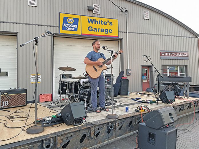 Opening Act Adam Hellyer entertains the early birds at the Annual Lion’s Head Homecoming Weekend Street Dance.