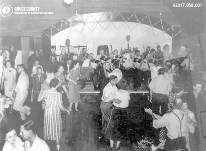 Beachfront dance pavilions were common at lakeside resort towns starting in the 1920s. In fact, on the Bruce coast there were seven. The oldest, at Oliphant, was joined by dance halls at Sauble Beach (two), Southampton, Port Elgin, Inverhuron and Kincardine.