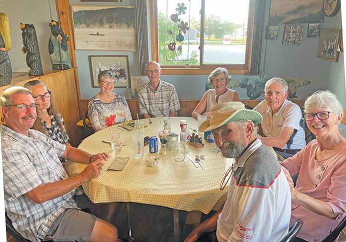 Photo: A few friends gathered at Bear Tracks restaurant in Ferndale for supper this week to celebrate Brian and Mary Swanton’s 60th Wedding Anniversary and Clive Morgan’s 80th birthday. Both are on August 18th.