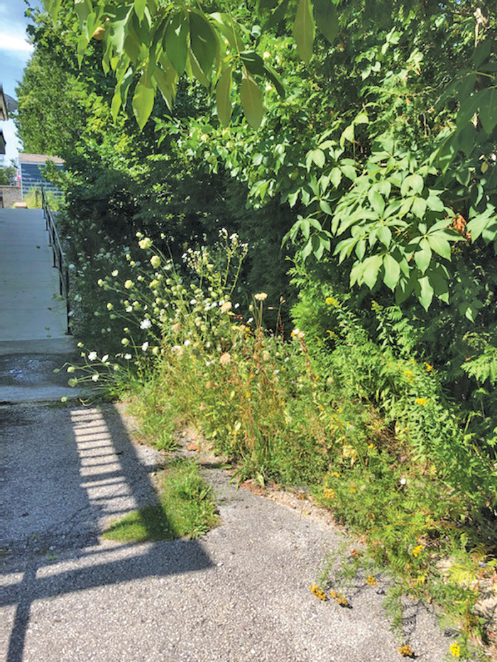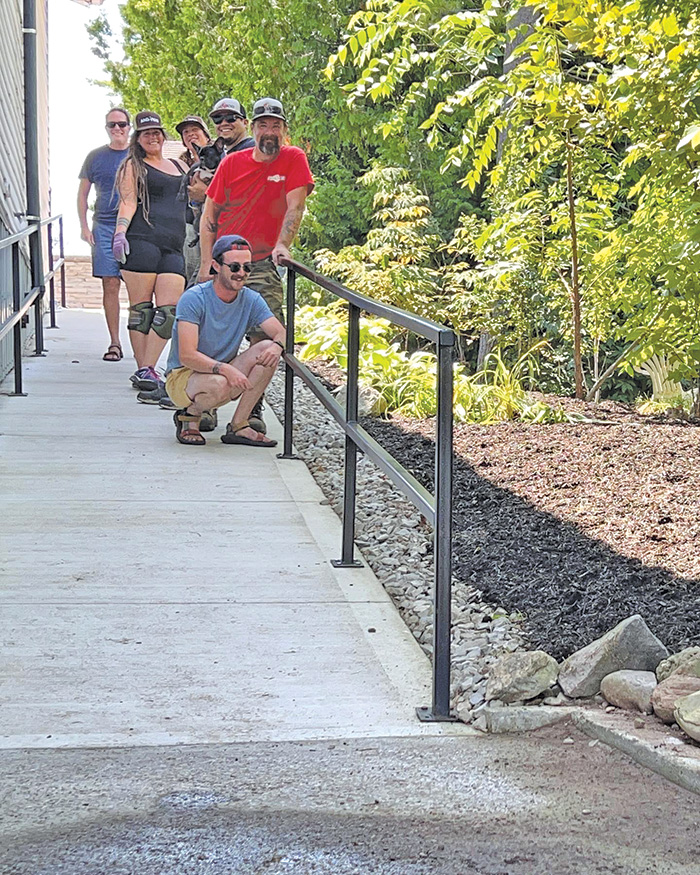 On a very hot Saturday in August, Rick Lane, Matt Gowland, Sean Hurst, Jose Andino-Rodriguez, Cheri Janknegt, Summer Martin and Bill Gowland tamed the weeds and distributed mulch along the ramp at the side of the Legion. This looks much better and the mulch will hopefully discourage weed growth.
