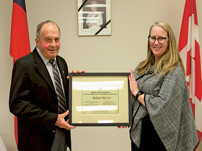 After approval of Minutes and Agenda, CAO Peggy Van Mierlo-West presented Mayor McIver with a certificate from the Ministry of Municipal Affairs and Housing recognizing 40 years of service with municipal government.
