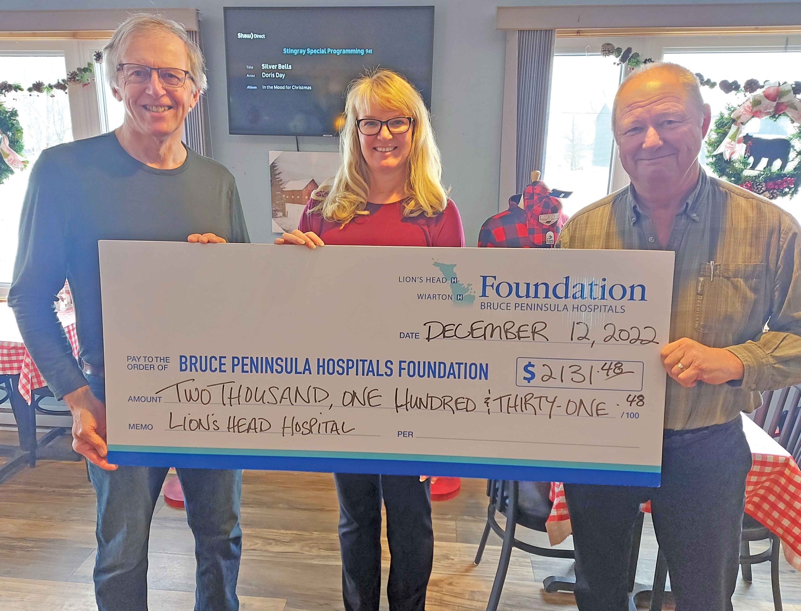 Bear Tracks Inn and Restaurant held a fundraiser breakfast for the Lion’s Head Hospital. All proceeds from the breakfast were donated to the Bruce Peninsula Hospitals Foundation to support technology that improves local urgent care for cancer patients.