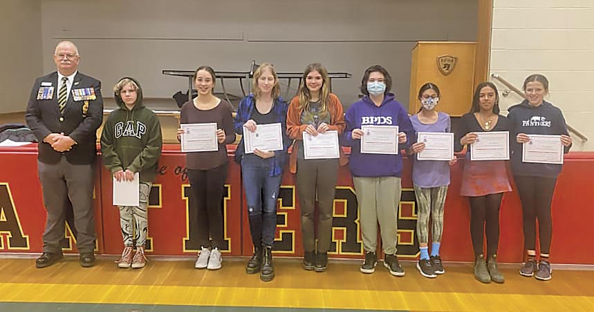 Our first community connection was the famous Remembrance Day Contest Assembly which happened on December 9, 2022. This was the first ‘real’ assembly we had held in two years – and the kids were excited! Students and staff from all grades gathered in the gym to hear Mr. White of Branch 202 present awards to the various winners.