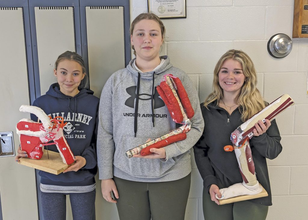 Secondary students have been working hard to finalize their projects and get ready for exams. For example, Gracey Williamson, Elise Stewart, and Chloe Cameron (pictured below right) with their 3-models of Synovial joints for their kinesiology final projects: shoulder, elbow and knee.