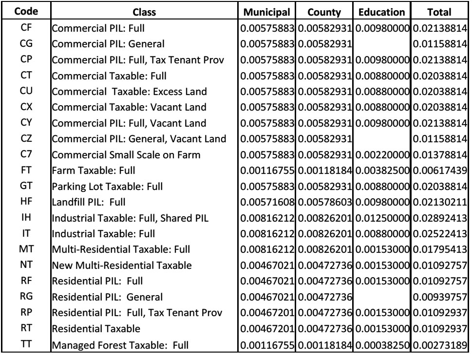 As it happens, the Agenda for MNBP Council’s March 13 Meeting includes a chart that gives us the tax rates: 0.01092937 for Residential, 0.02038814 for Commercial.