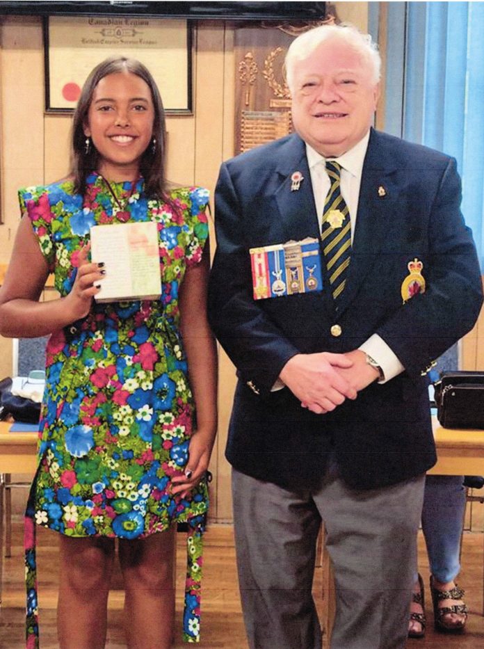 On Thursday July 6th, Aria Thomas presented her winning speech at School, Zone, District and Provincial Competition levels. Richard Smith presented Aria with a gift. (see photo left)