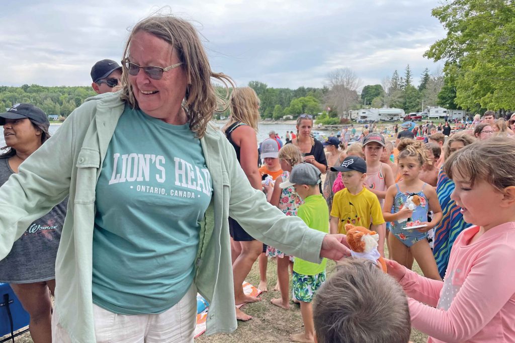 Sponsors Marydale Ashcroft and Sarah Perrault of The Shops at 84 Main and Tim Hayes of the Community Bottle Drive donated all the prizes as well as organizing this very popular Civic Holiday weekend activity.