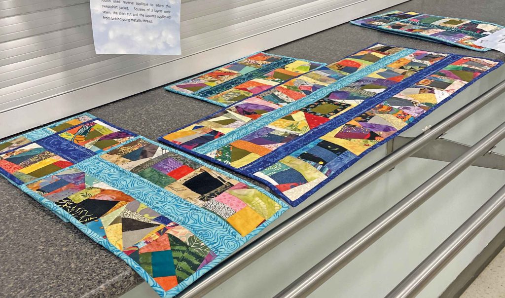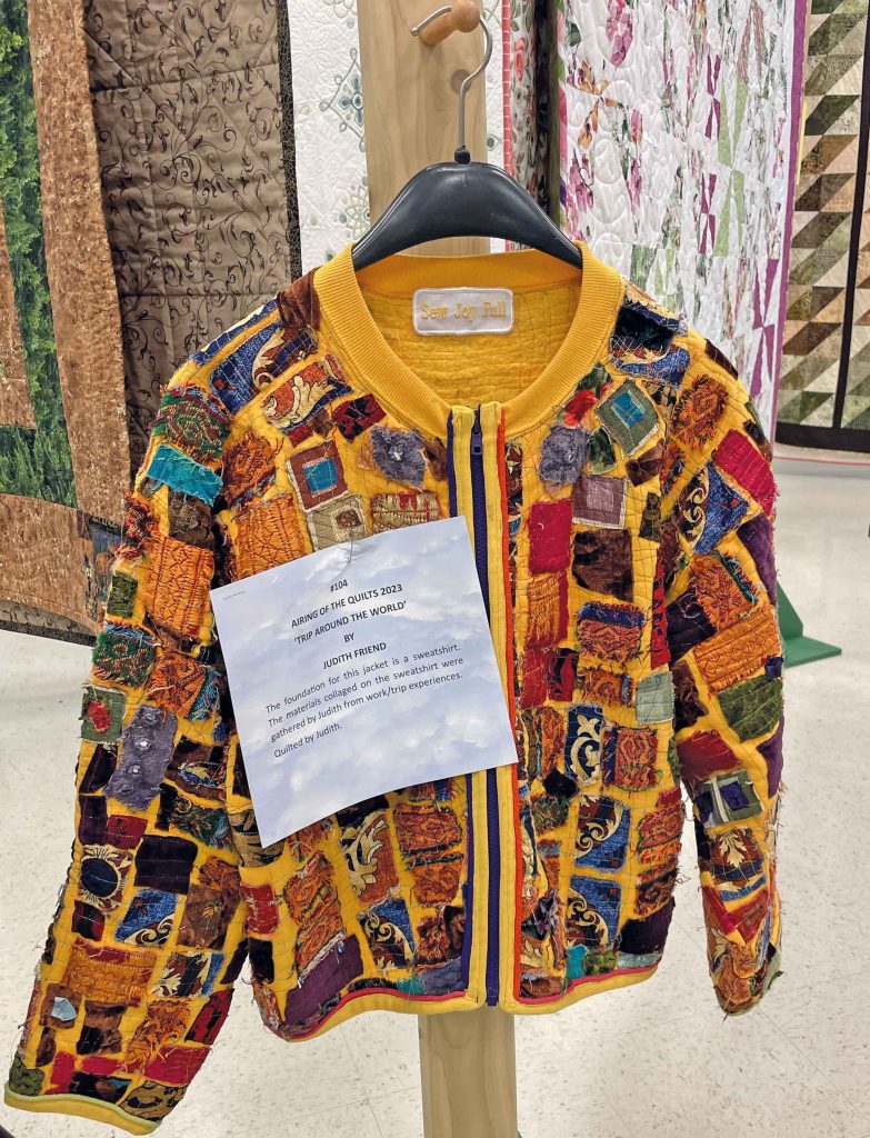 This year, 110 quilted items were on display. While the majority of the beautiful and intricate designs on display were the quilts; quilted jackets, table runners, place mats and travel kits were also featured.