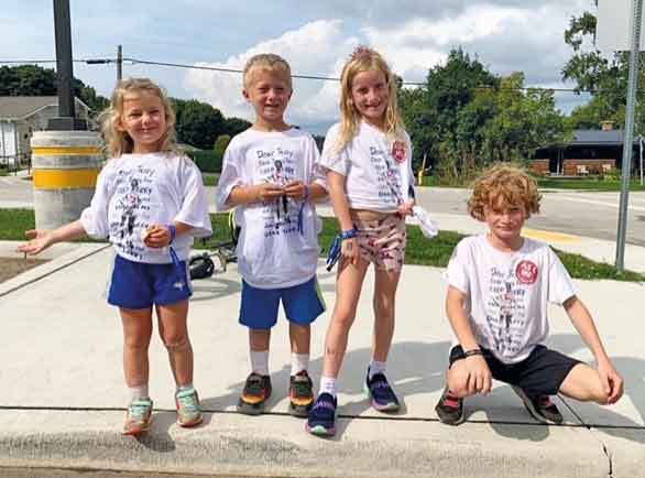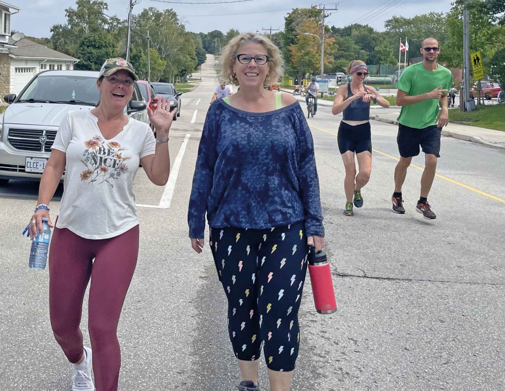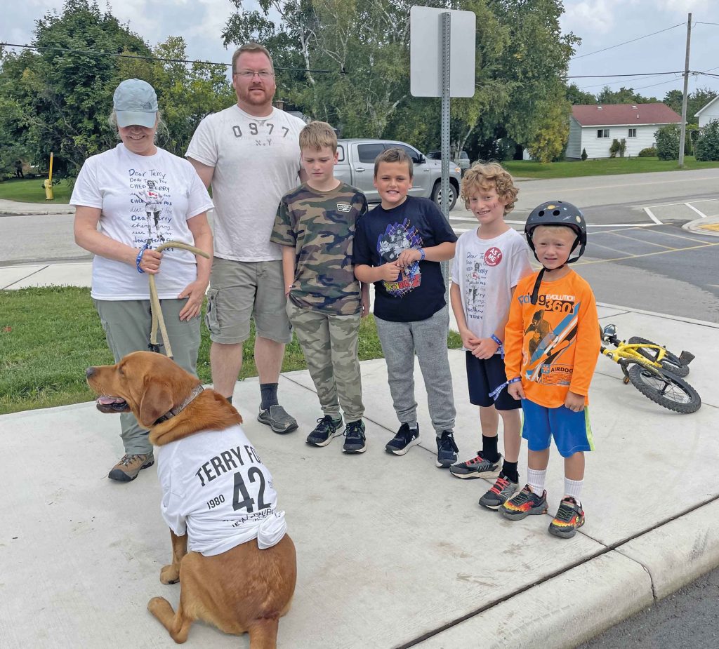 Photo L-R: Bosco (the dog) with Betty, Lukas, Reid, Brady, Lincoln and Beau at the annual Lion’s Head Terry Fox Run.Photo: Zane Davies with Roz and Zev at the Lion’s Head Terry Fox Run.Photo: Organizer Adam Martens addresses the crowd at the September 17th Lion’s Head Terry Fox Run.Photo: Participants make their way down Main Street in Lion’s Head at the September 17th fundraising event.Photo: Lion’s Head Terry Fox Run participants make their way down Isthmus Bay Road.Photo: Taylor and Cole – members of a eight person team (based in Kitchener/cottagers from Wiarton). The O’Donnell Team were the biggest fundraisers, donating $7,075 to the Lion’s Head event.Photo: Kara Hellyer, Quinn Hellyer, and Felicity West at the annual Lion’s Head Terry Fox Run.Photo L-R: Quinn and Beau Hellyer and Ella and Lincoln Martens sport the 2023 Terry Fox t-shirts.Photo: Young participants await the start of the event – (L-R) Reid, Lincoln, Tucker, Zev, Felicity, Brady, and Beau.Photo: Lion’s Head residents Chantelle and Brooke at the Lion’s Head Terry Fox Run.Photo: Peninsula residents Andrea and John Vanderkooy have participated in the Terry Fox Run for the last five years.