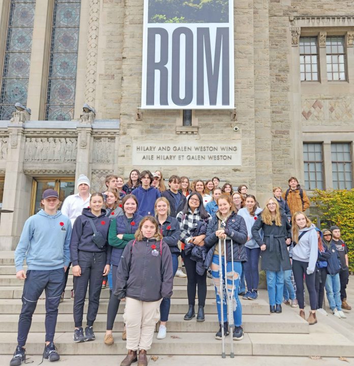 On November 9, almost 40 secondary Art and History students travelled with Mrs. E Cameron, Ms. Stanton, and Mrs. J Cameron to Toronto to visit the Royal Ontario Museum. Students got to visit a special exhibit titled ‘Death: Life’s Greatest Mysteries’ and explore the many ways various cultures celebrate and commemorate this difficult topic. Students also got to explore the general admission exhibits. Some of the favourites were the Dinosaur Exhibit, Ancient China, and Ancient Egypt. All three teachers were pleased with the students’ enthusiasm and willingness to learn about various cultures.