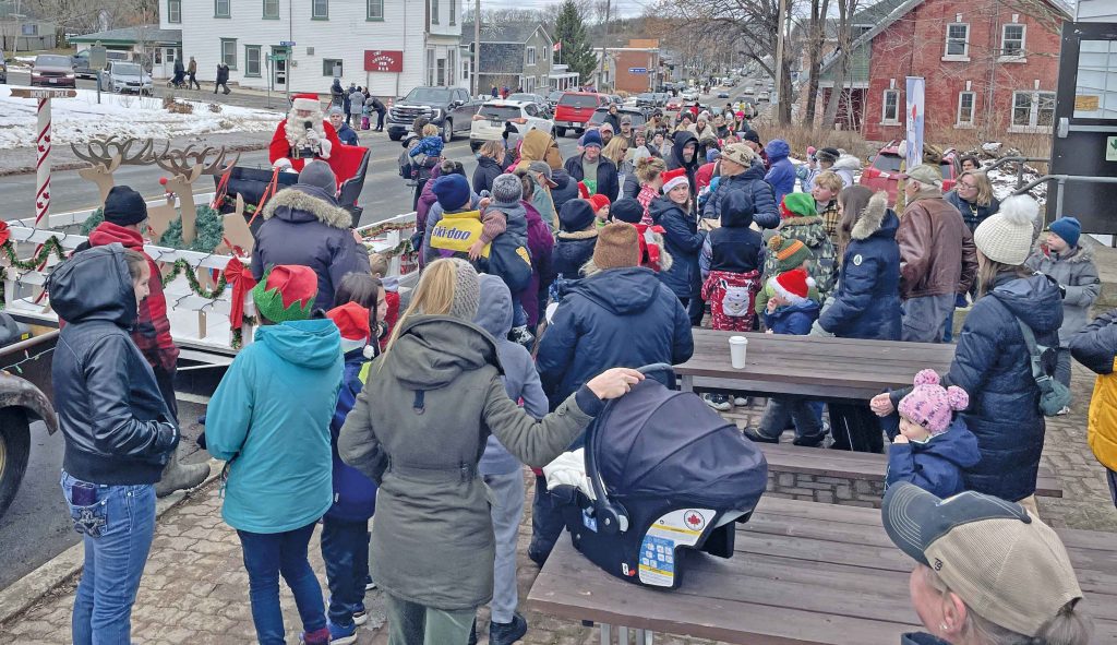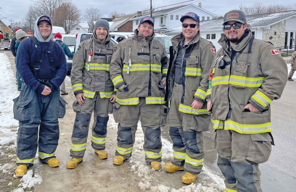 Photo: The Central Peninsula Sno-Drifters and Tobermory Snowmobile Club float at the Lion’s Head Santa Claus Parade.Photo: The Bartley family arrived early to get a premium viewing spot – Rene Kaizer, Jasmine Bartley (in stroller) Jade Bartley, Jeff Bartley.Photo: Firemen from the Northern Bruce Peninsula Fire & Emergency Services – Aiden, Cam, Govert, Zach, and Whyatt at the annual Lion’s Head Santa Claus Parade.Photo: Phyllis, Ruth and Mickey (dog) enjoy the annual Santa Claus parade in Lion’s Head on December 2nd.