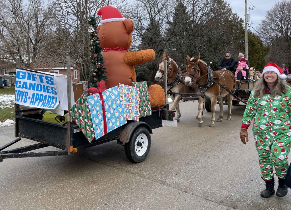 Photo: Gerry Gregory drums his way through the parade.Photo: The Lion’s Head & District Lions Club parade float.Photo: MNBP Councillor Todd Dowd hands out candy at the Lion’s Head Santa Claus Parade.Photo: Friends of the Lion’s Head Library.Photo: The Shop at 84 Main parade float.Photo: “I call shotgun!”Photo: Margaret and Grace enjoy the parade while keeping warm in their vehicle.Photo: The parade ends at Bruce Peninsula District School.Photo: The Bridge family – Kinsley, Payton, Michelle holding Reese, Molly.Photo: Parks Canada mascot Parka high fives the crowd.