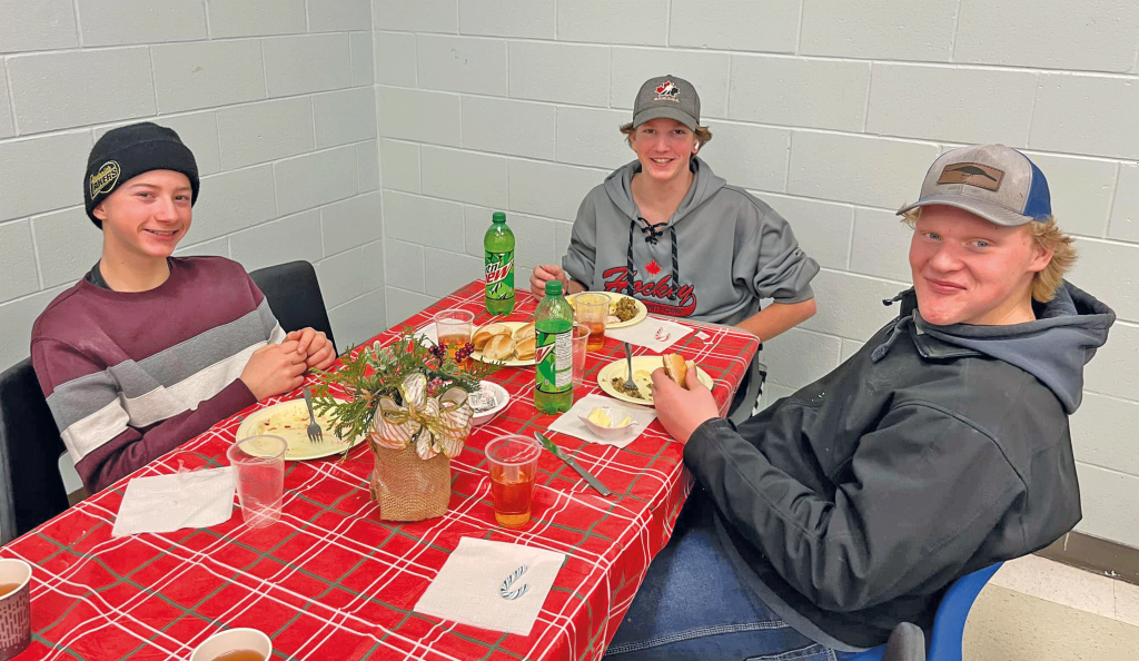 Photo: Students Travis Vanderkooy, Michael Rouse, and Cole Catley enjoying the Festive Feast.