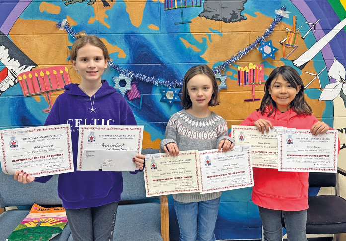 Photo L-R: St Edmunds Public School Remembrance Day Contest Winners – Ajay Janknegt, Emory Harpur and Olivia Brown.