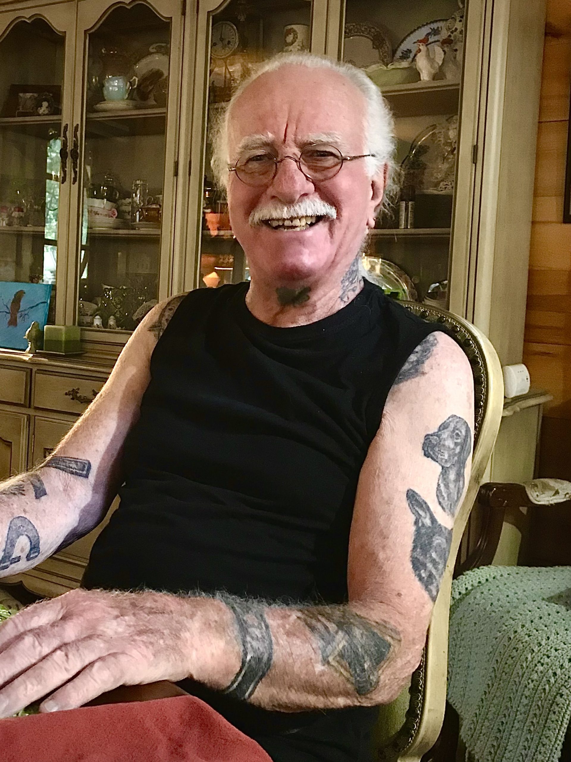 To celebrate their 50th wedding anniversary Joan and Pete got commemorating tattoos, Joan on her wrist and Pete on his neck; this prompted dozens of tattoos over the last decade of his life. Pete is survived by his beloved wife, Joan, and his son, Scot, and grandchildren Jaida, Lauren, Zack, and Luke, and great-grandchildren Summer-Lynne and Memphis. He will be dearly missed by his sister, Kathy, husband Hank, and niece and nephew, Tim and Allison; his brother, David, and wife Linda and nephews, Sean and D’Arcy. For those who knew Pete, you likely saw him walking around town with his walking stick, all-black attire, and a dog by his side. He will be joining his dearly missed daughter, Paula, and his furry pals Canoe, Doc, Kizzy, Coal, and Tar. In lieu of flowers, please consider donating to the Owen Sound Animal Shelter, https://www.owensoundanimalshelter.com
