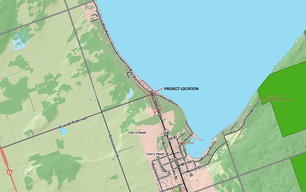 April 18, 2024 – Please take notice that road construction and storm sewer installation will be taking place this spring on Bruce Road 29 (Main Street) and Isthmus Bay Road, north of Lion’s Head, Ontario. Motorists can expect alternating lane closures on Bruce Road 29 and Isthmus Bay Road, with traffic control measures in place starting April 22, 2024 and ending in early Summer 2024.