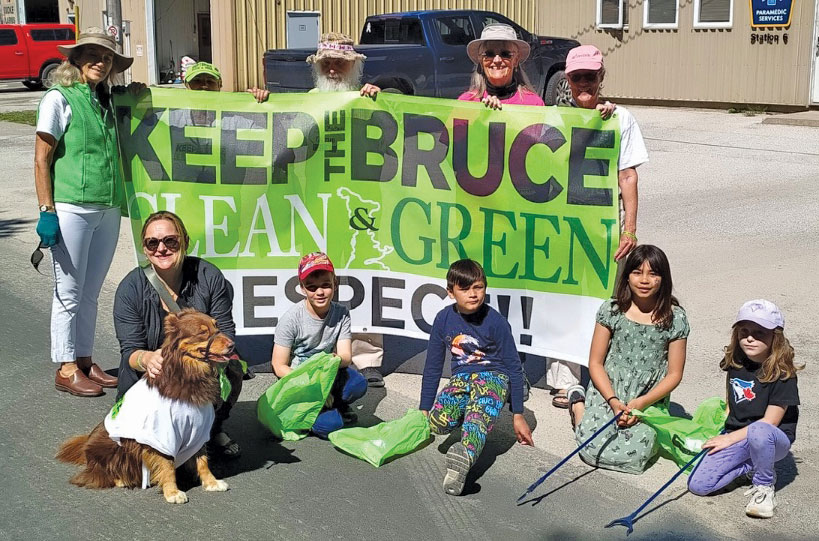 Cigarette butts and doggy poop are usually among the top contributors of waste left behind. Our new Mascot Denali (owned by Barbara Zych) led the way as Keep the Bruce Clean & Green marched in the 50th Annual Chi-Cheemaun Festival Parade.