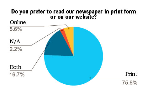 • 73.3% of respondents had visited our website www.brucepeninsulapress.com. 75.6% preferred to read our newspaper in print, 5.6% preferred online, 16.7% replied both, 5.6% N/A.