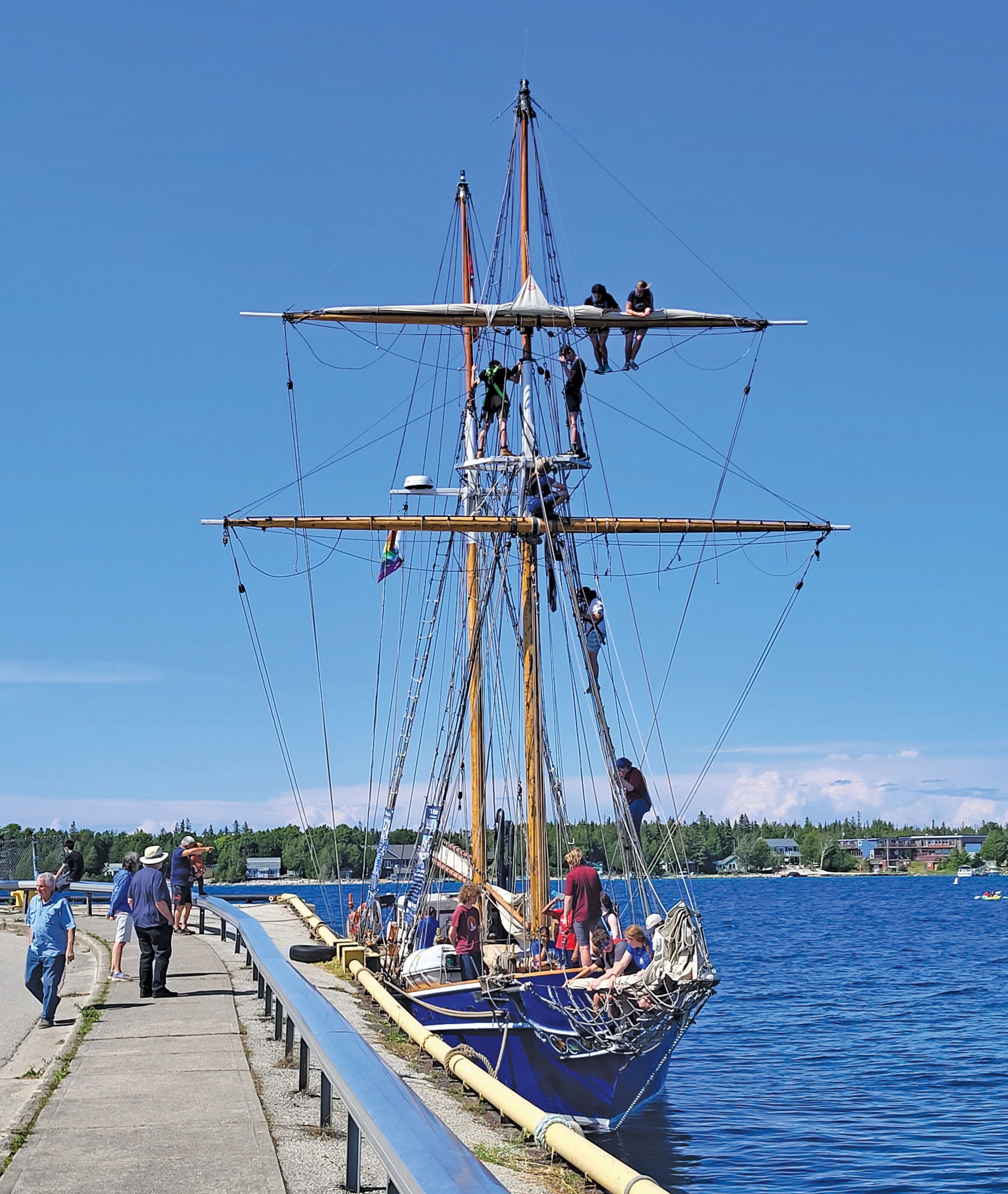 The TS Playfair, with a sparred length of 22m and a mainmast height of 17.3, makes a cozy home for youthful and hardworking crew between the ages of 13 and 18 while they learn the old school skills of sailing and navigation under the leadership of 2 adults. The Playfair made its annual stop in Tobermory on July 14-17.