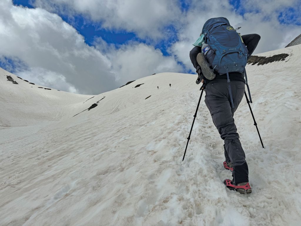 Photo: A tough climb through the snowy passes in mid-June. We encountered snow above 2100m.