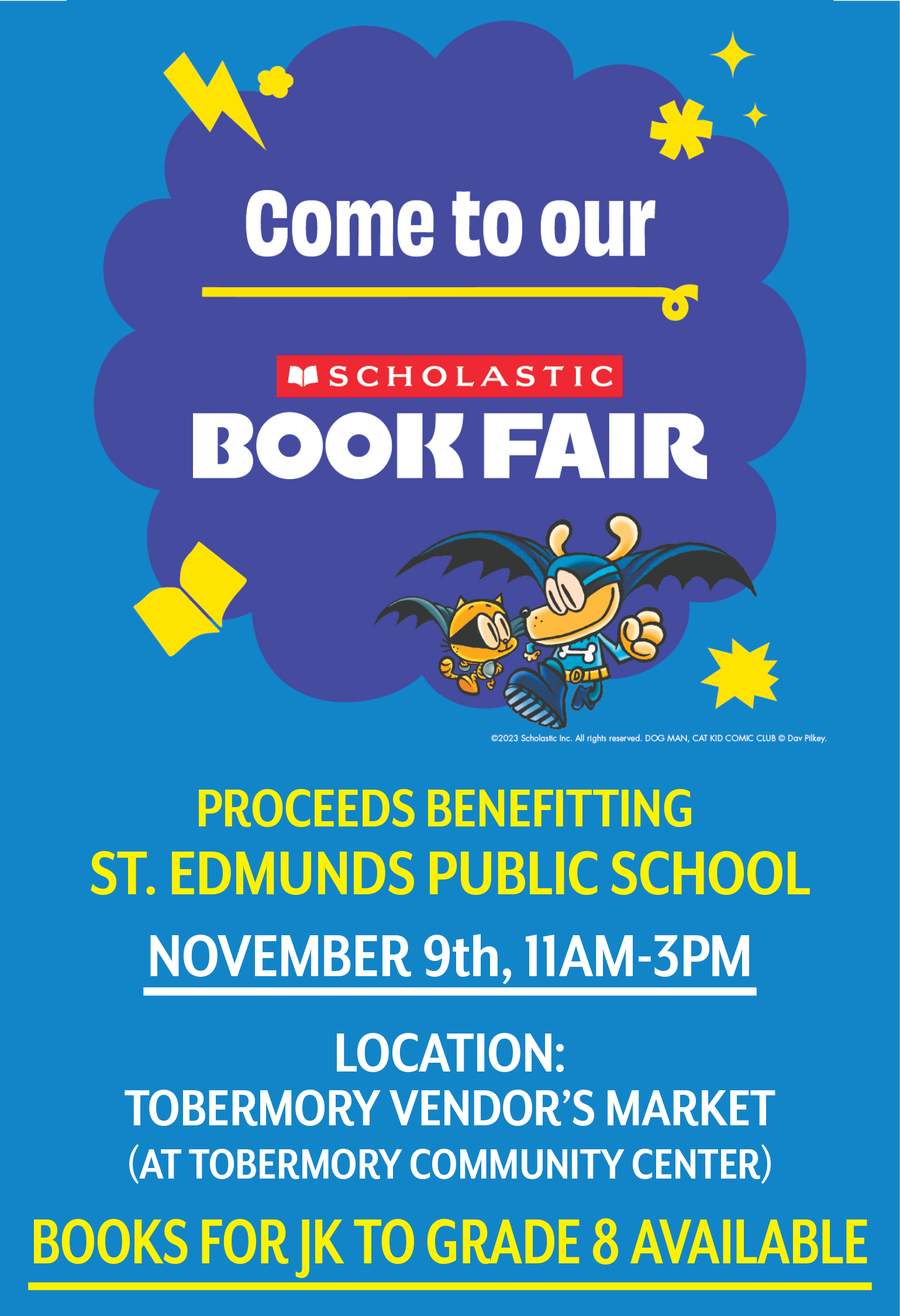 Mark your calendars for Saturday, November 9th when the Scholastic Book Fair will be coming to Tobermory! Taking place at the Tobermory Vendor’s Market at the Tobermory Community Centre, the book fair will run from 11:00am to 3:00pm.
