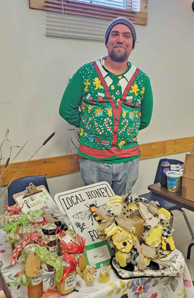The kind and generous shoppers trickled in at first and later arrived in large numbers. They left slowly with their many purchases and bellies filled with soup, pizza (donated by Peacock’s Foodland) and mini-pies. They were treated to a visit from our beloved Jolly Old St. Nicholas and enjoyed socializing with vendors, volunteers, and other shoppers.